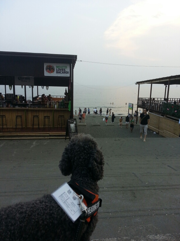 海は暑かったので、浜に打ち上げられたクジラやイルカのようにこまめにサスケに水をかけながら過ごしました。